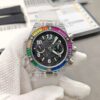 The Hublot Big Bang Unico Sapphire Rainbow 411.JX.4803.RT.4099 Replica is a luxury watch. It features a titanium case with a skeleton color and a gem-set bezel. The watch is powered by an automatic HUB1242 movement with a 60-hour power reserve and a precision of -3/+3 seconds per day within COSC certification limits. The dial is a skeleton color with mixed indices and 904L stainless steel stick hour markers and resin stick hands.