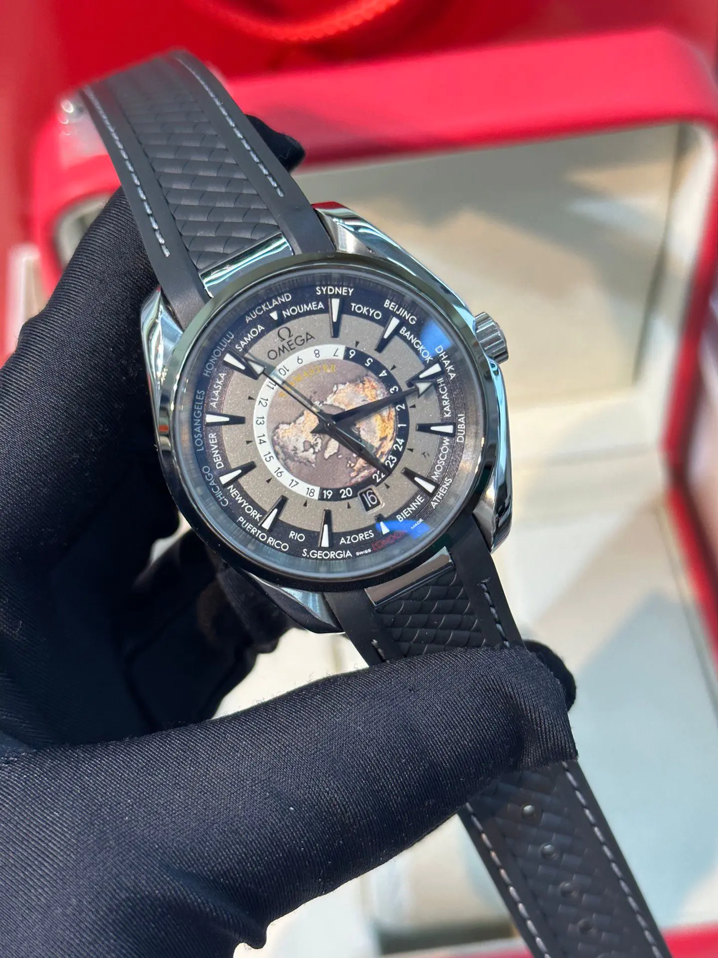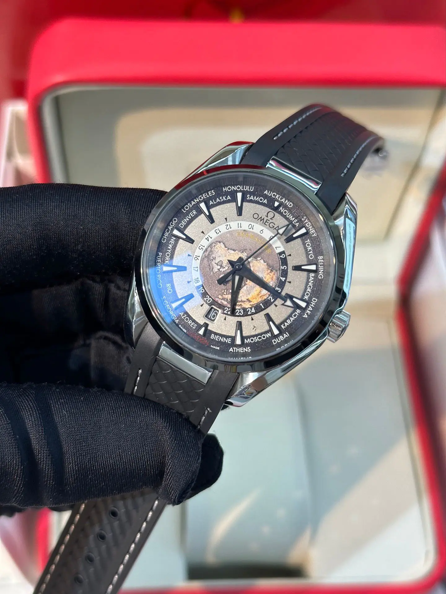 The Replica Swiss Omega Seamaster Worldtimer GMT 43mm delivers a sophisticated blend of world-time functionality and modern luxury design. Built for global travelers and collectors alike, this model features a highly detailed worldtimer dial layout housed within a bold 43mm case, offering both visual depth and practical GMT capability.