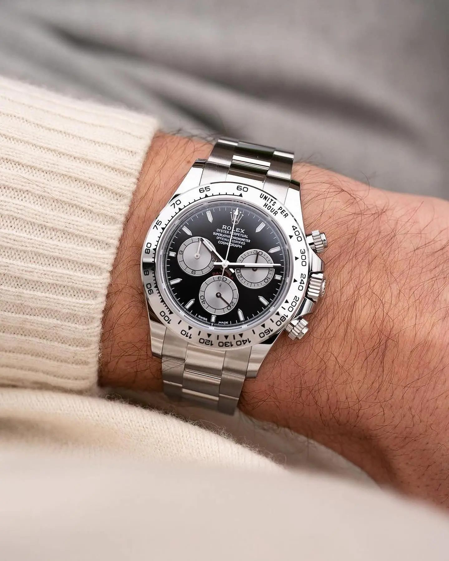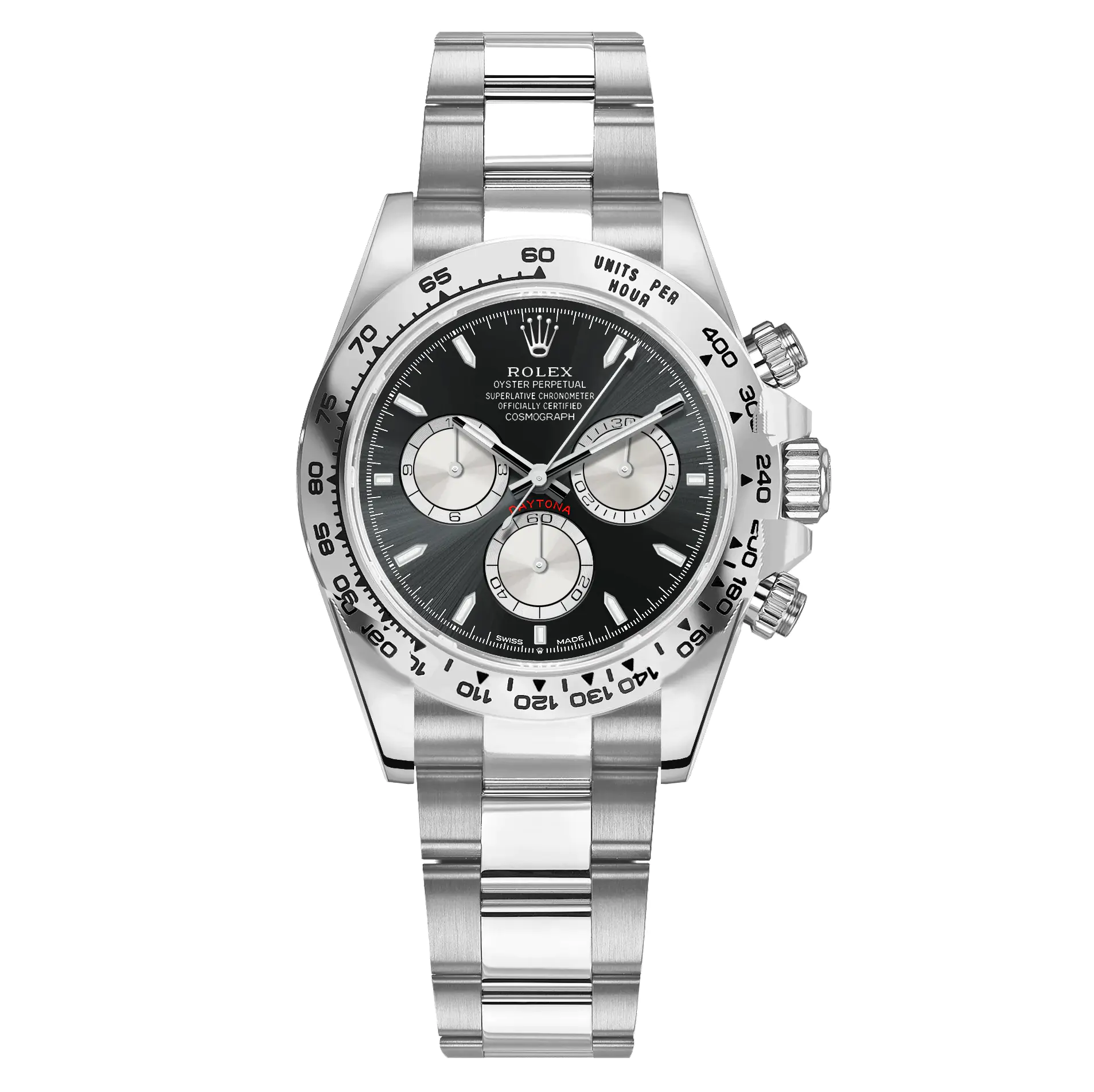 Powered by a high-precision Swiss movement, this timepiece offers smooth chronograph operation and dependable accuracy. The 40mm case size provides a perfectly balanced wrist presence, staying true to the classic Daytona proportions while ensuring comfort for daily wear.