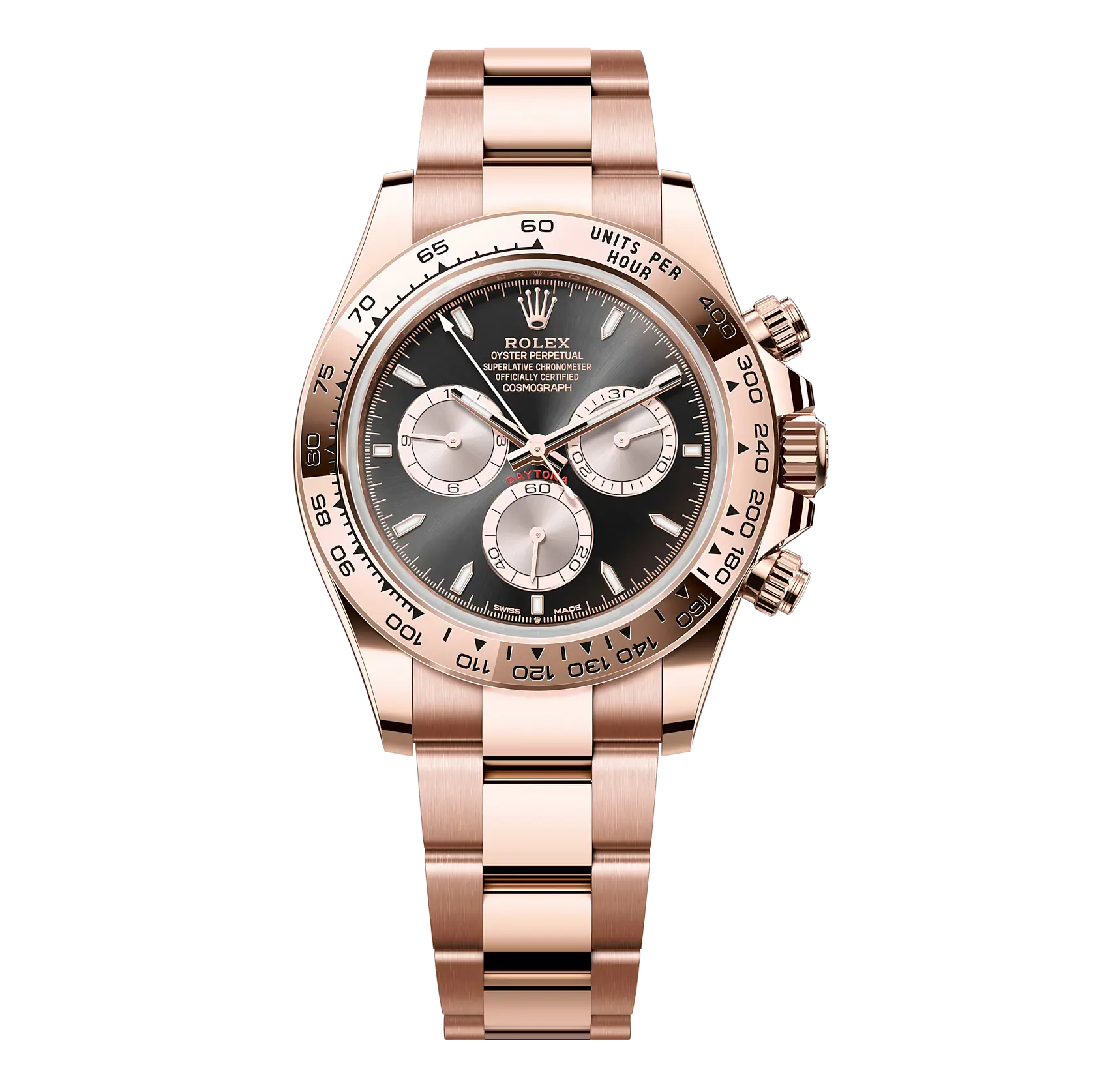 The Replica Swiss Rolex Cosmograph Daytona Everose Gold & Chocolate Dial delivers a rich and sophisticated interpretation of Rolex’s legendary chronograph. The warm Everose gold finish pairs seamlessly with the deep chocolate dial, creating a bold yet refined aesthetic that stands out while maintaining timeless elegance.