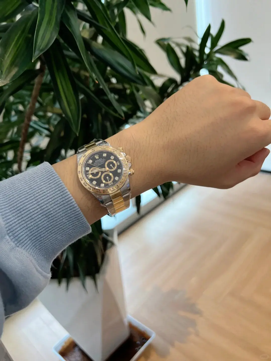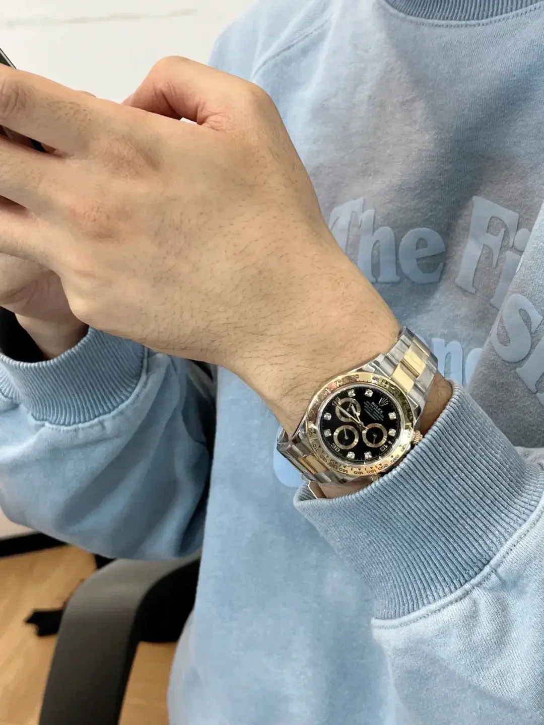 Powered by a high-precision Swiss movement, this timepiece provides smooth chronograph functionality and reliable timekeeping. The balanced case design offers a confident wrist presence, while the two-tone bracelet adds depth, durability, and a premium feel true to the Daytona legacy.