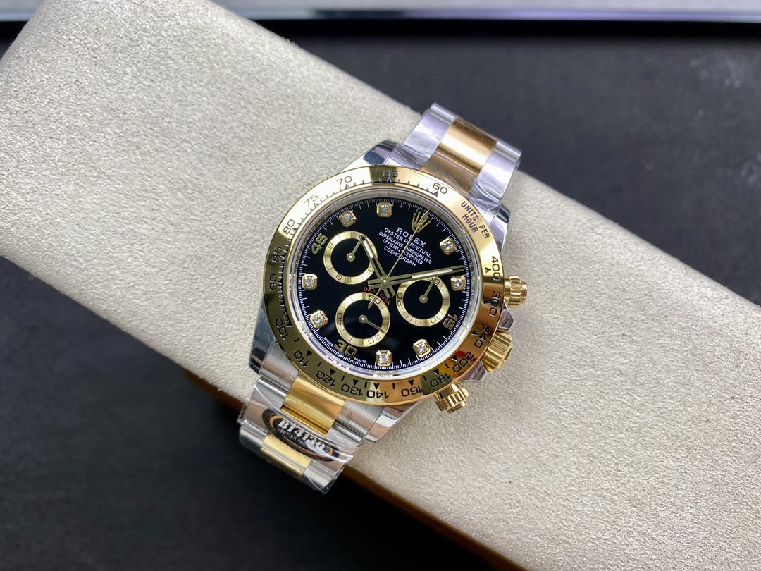Availability for the Cosmograph Daytona Two-Tone Gold & Black Dial replica is limited, and restocking cannot be guaranteed. This piece is ideal for collectors and enthusiasts seeking a balanced luxury chronograph with timeless appeal.