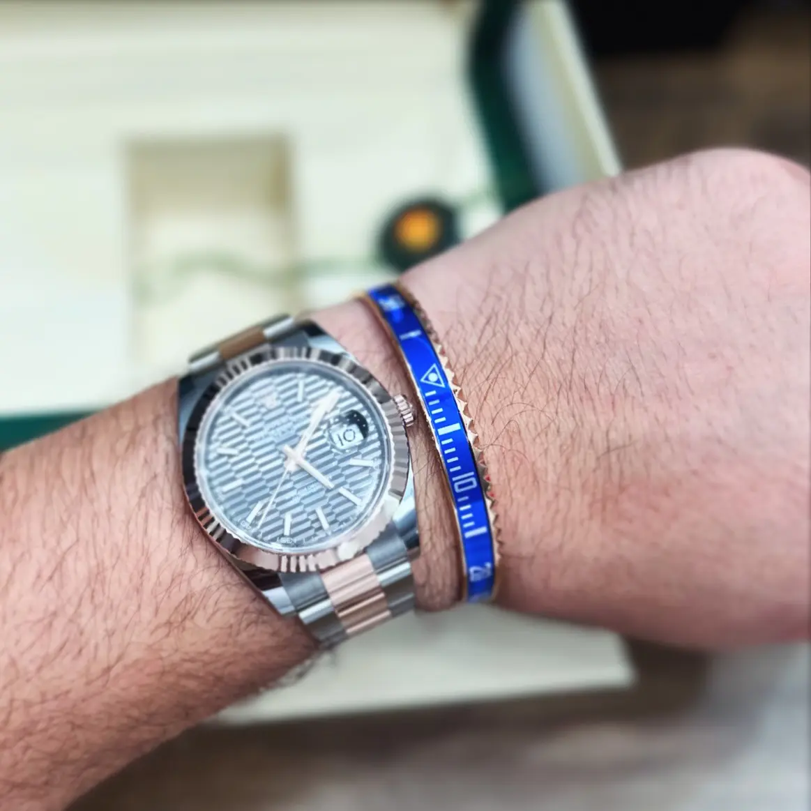 Powered by a precise Swiss movement, this timepiece offers smooth performance and dependable accuracy. The 41mm case provides a balanced wrist presence, while the carefully finished bracelet enhances comfort and reinforces the unmistakable luxury feel associated with the Datejust collection.