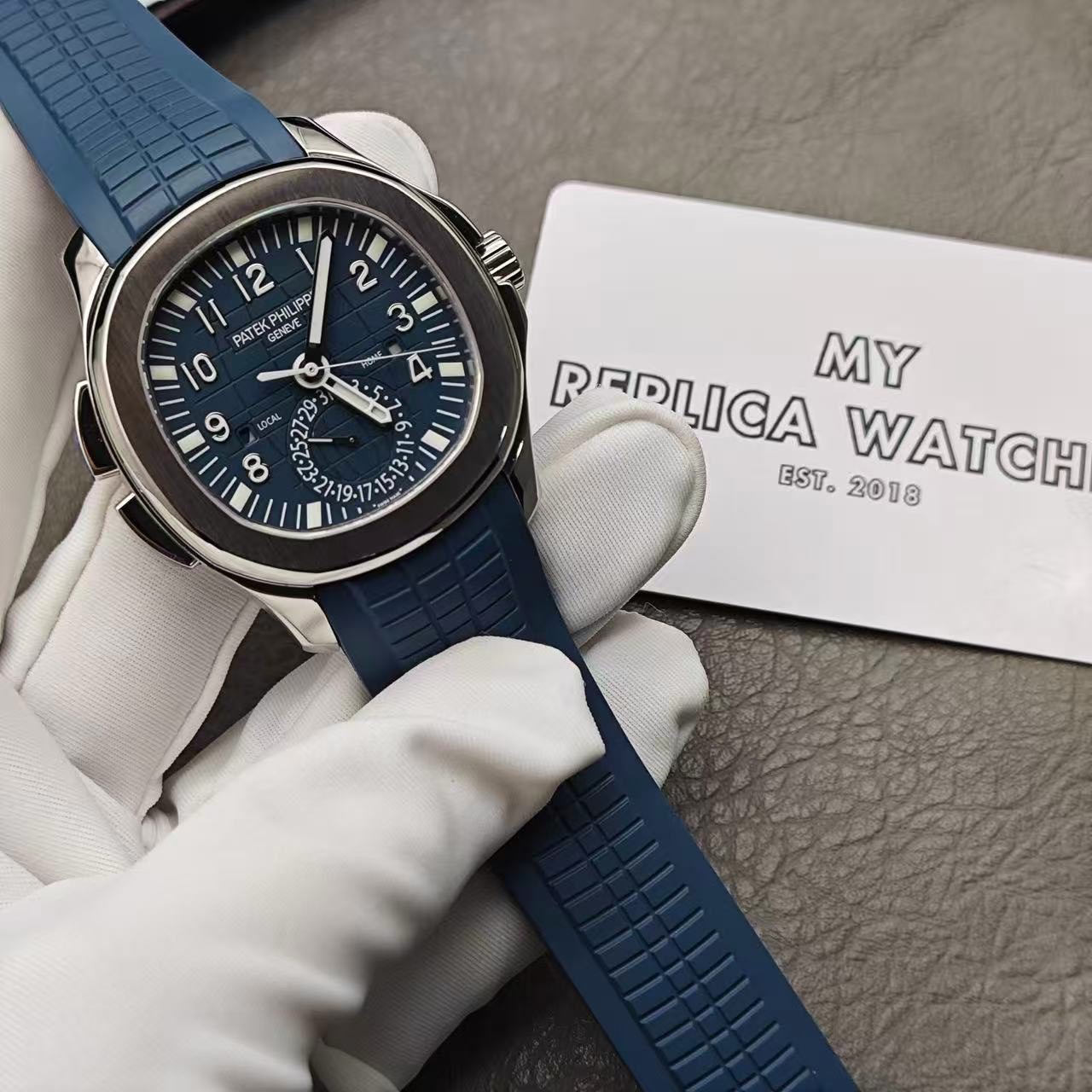 - Eine Replik kann zu einem weitaus günstigeren Preis als eine echte Uhr erworben werden. Dennoch sieht eine Replik New 2024 Replica Clone Denim Blue Patek Philippe Aquanaut Travel Time 5164G genauso aus und fühlt sich genauso an wie das Original.