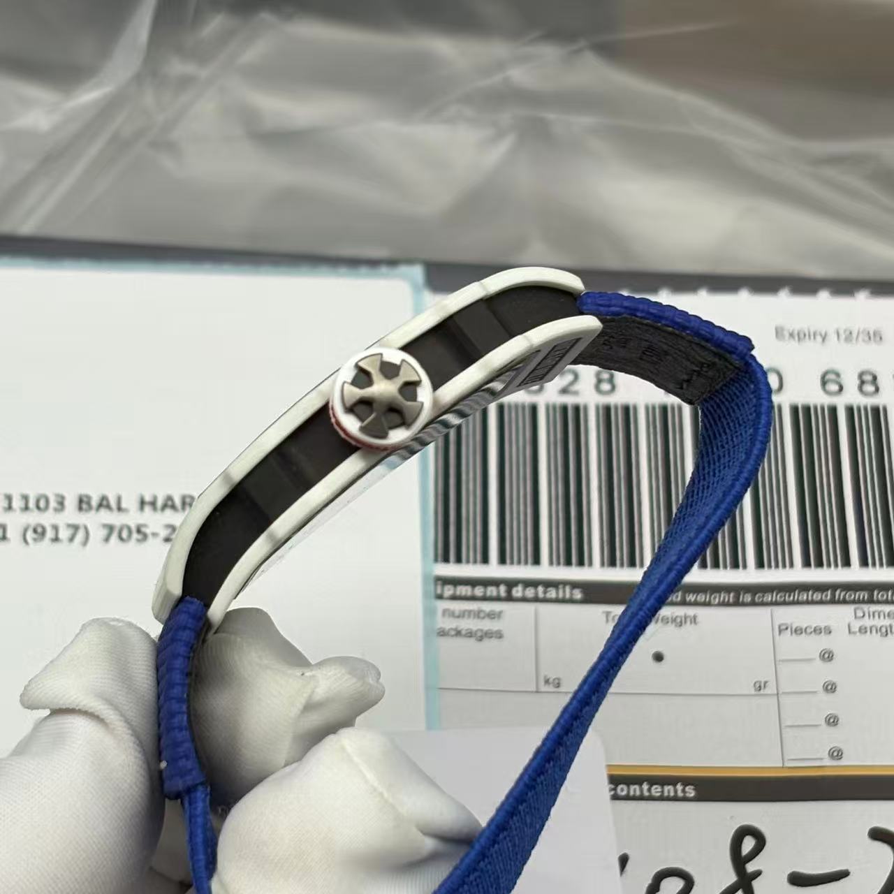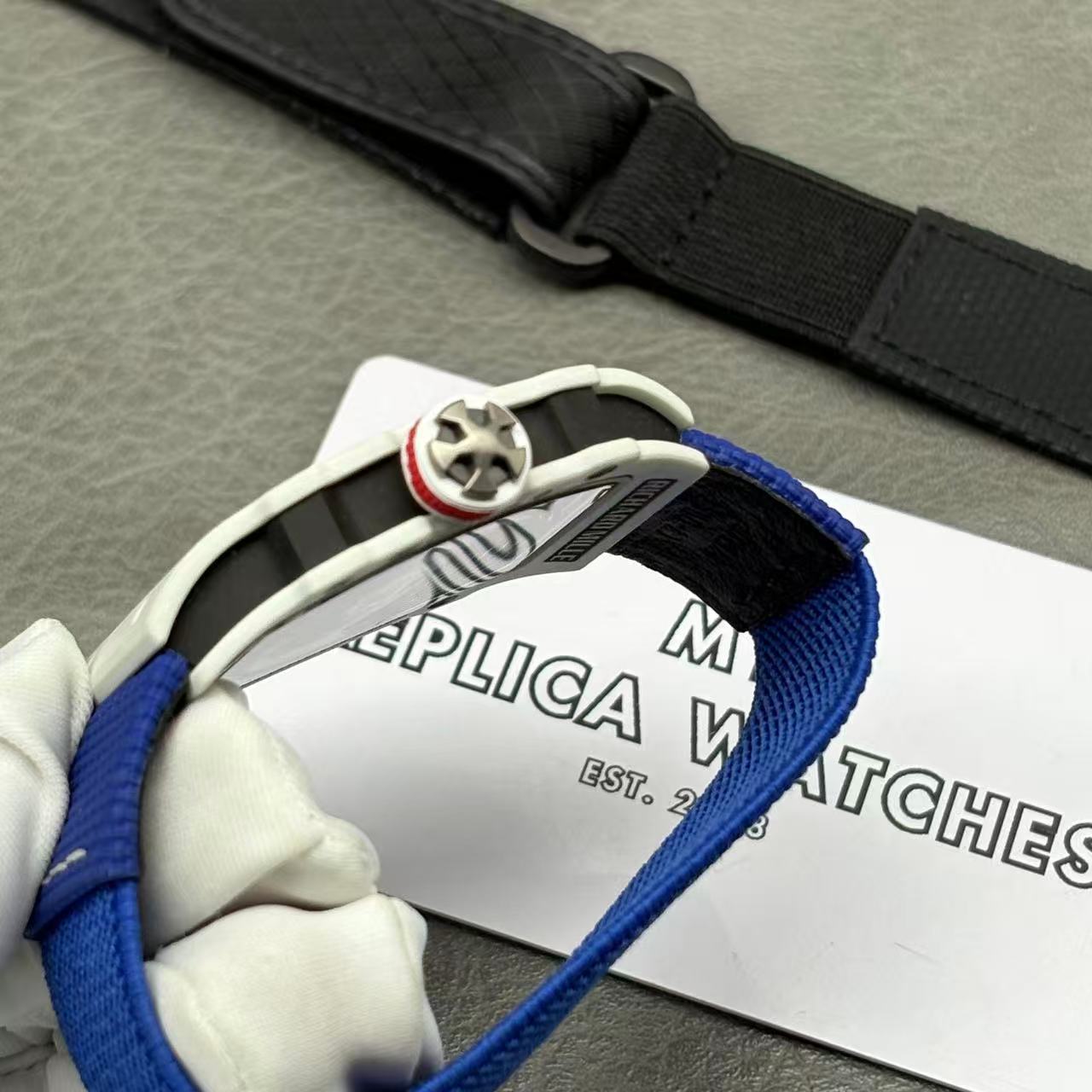 | Materials | – Case: White Carbon TPT (Thin Ply Technology) for durability and lightweight feel. – Strap: Blue elastic Velcro strap, similar to the original’s athletic design. |