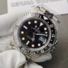 Crafted with a jet-black ceramic bezel, matte black dial, and brushed 904L stainless steel case with a DLC-coated finish, the „Bruce Wayne“ GMT-Master II stands out with minimalist power. Equipped with a reliable Swiss-clone automatic movement, it mirrors the Rolex Caliber 3285, offering smooth second time zone tracking and date function. This super clone doesn’t just look the part — it performs like the real thing.