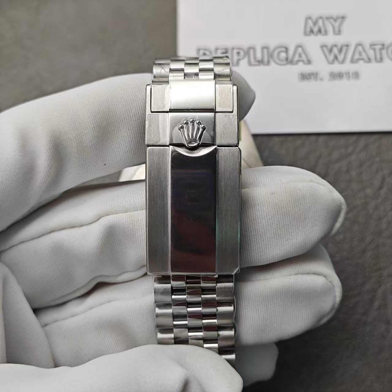 Crafted with a jet-black ceramic bezel, matte black dial, and brushed 904L stainless steel case with a DLC-coated finish, the „Bruce Wayne“ GMT-Master II stands out with minimalist power. Equipped with a reliable Swiss-clone automatic movement, it mirrors the Rolex Caliber 3285, offering smooth second time zone tracking and date function. This super clone doesn’t just look the part — it performs like the real thing.