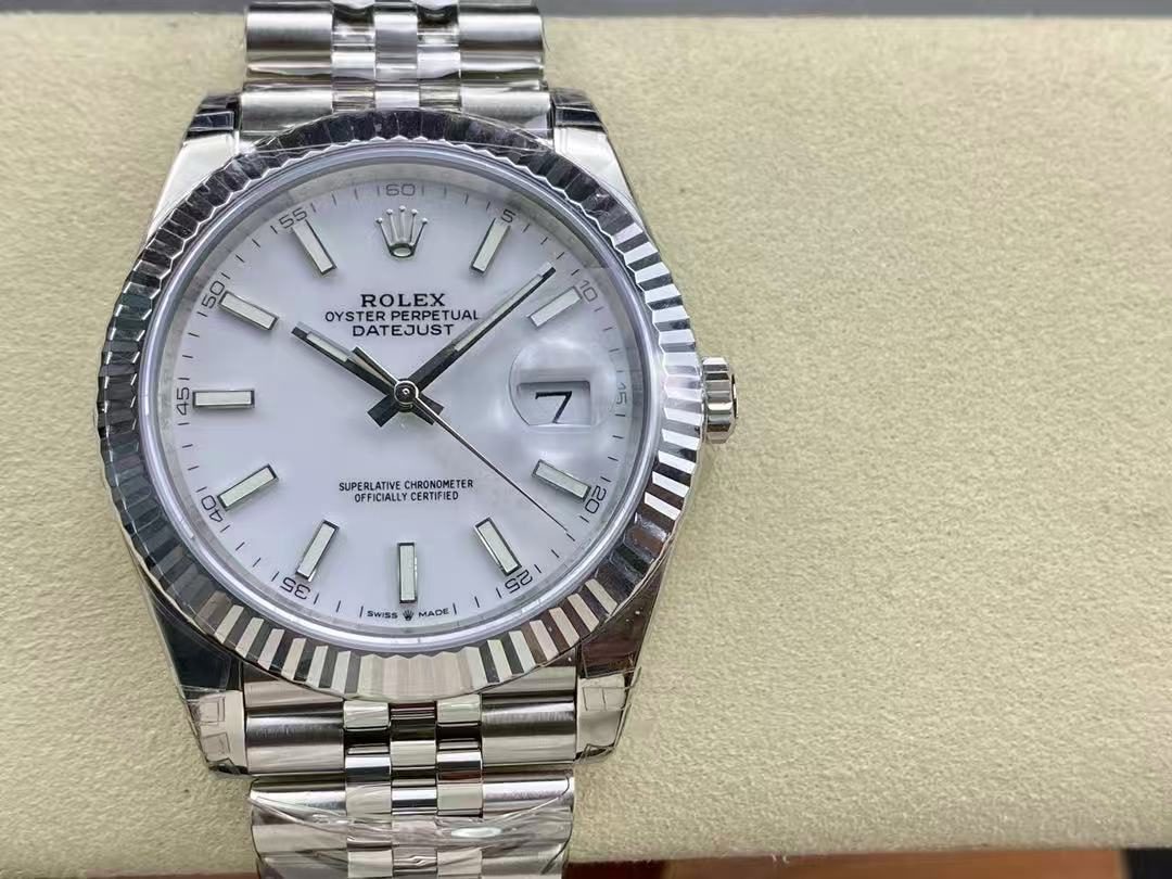 Réplica AAAA+ Rolex Datejust 41 Acero Esfera Blanca Bisel Liso Reloj Oyster 126300