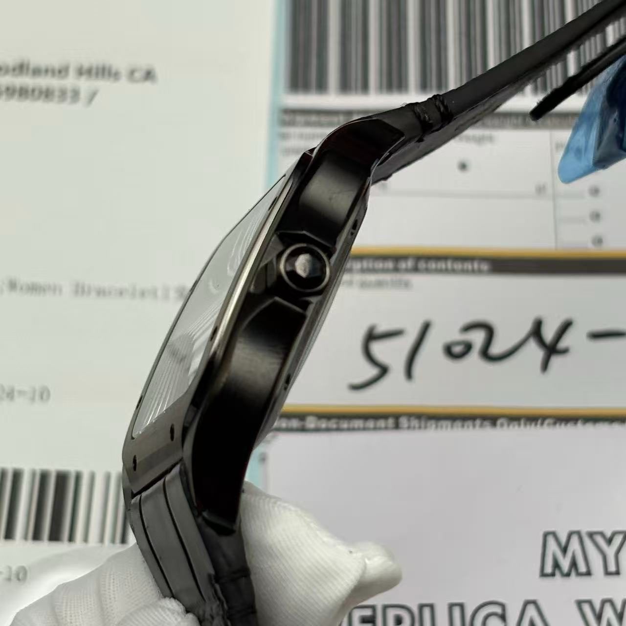 The Replica Cartier Santos WHSA0009 Skeleton Watch is a 1:1 super clone of one of Cartier’s most modern and eye-catching models. This version keeps the signature square case and exposed screws but adds a fully skeletonized dial, letting you see the movement and bridges from the front.