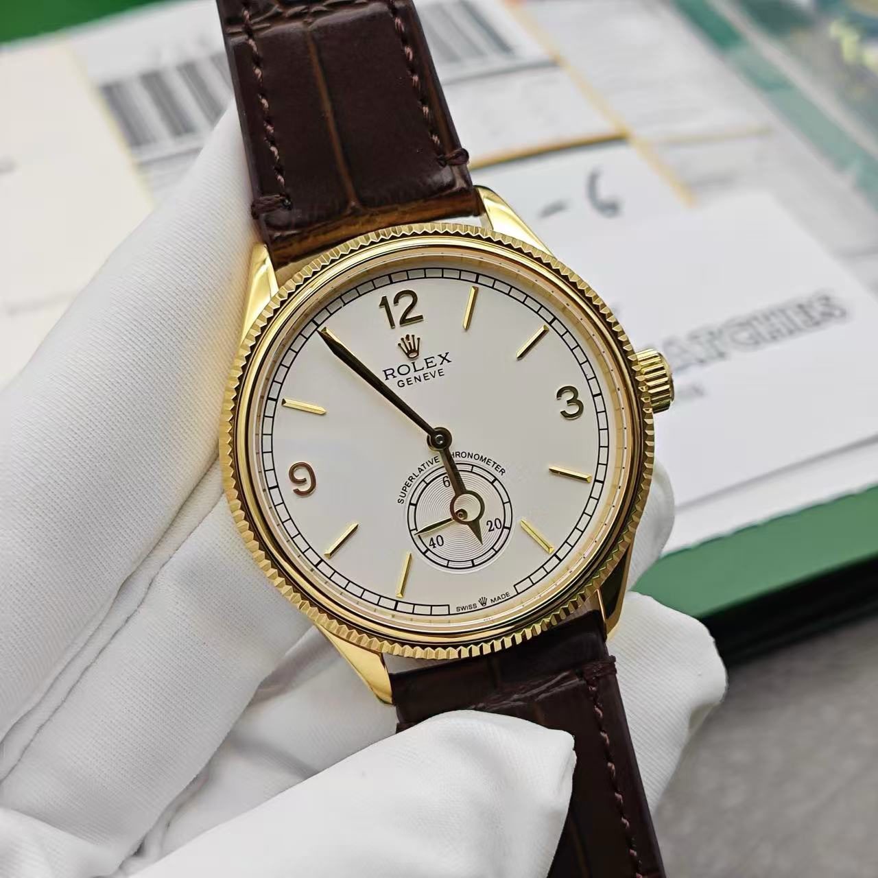 - ¿ Tienes ya un auténtico reloj de alta gama que no quieres llevar por motivos de seguridad o por razones de devaluación en algunas ocasiones ? Lleva tu Réplica Rolex 1908 de alta calidad: 39 mm, oro amarillo con correa de piel de aligátor y siéntete más seguro, ten la misma confianza, protege tus objetos de valor