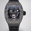 At its heart beats an advanced tourbillon movement, engineered for supreme precision and showcased beneath a scratch-resistant sapphire crystal. The watch combines robust durability with artistic craftsmanship, a hallmark of Richard Mille’s innovative spirit. Fitted with a rugged black rubber strap, this RM 052 replica offers ultimate comfort and flexibility, making it suitable for both sporty wear and high-end occasions.
