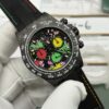 High-end customized special edition Rolex Daytona carbon fiber material, 4130 full-function chronograph mechanical movement Daytona, colorful graffiti personalized surface design, black cloth strap, 40mm sports casual men’s watch.