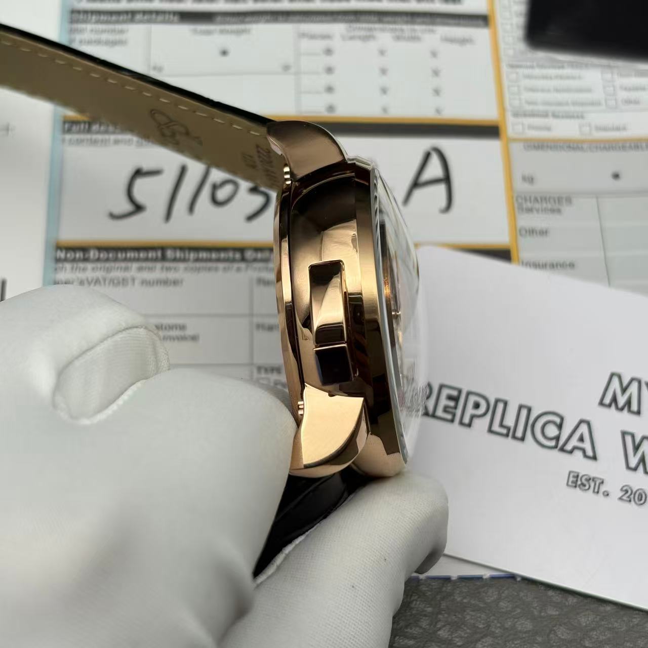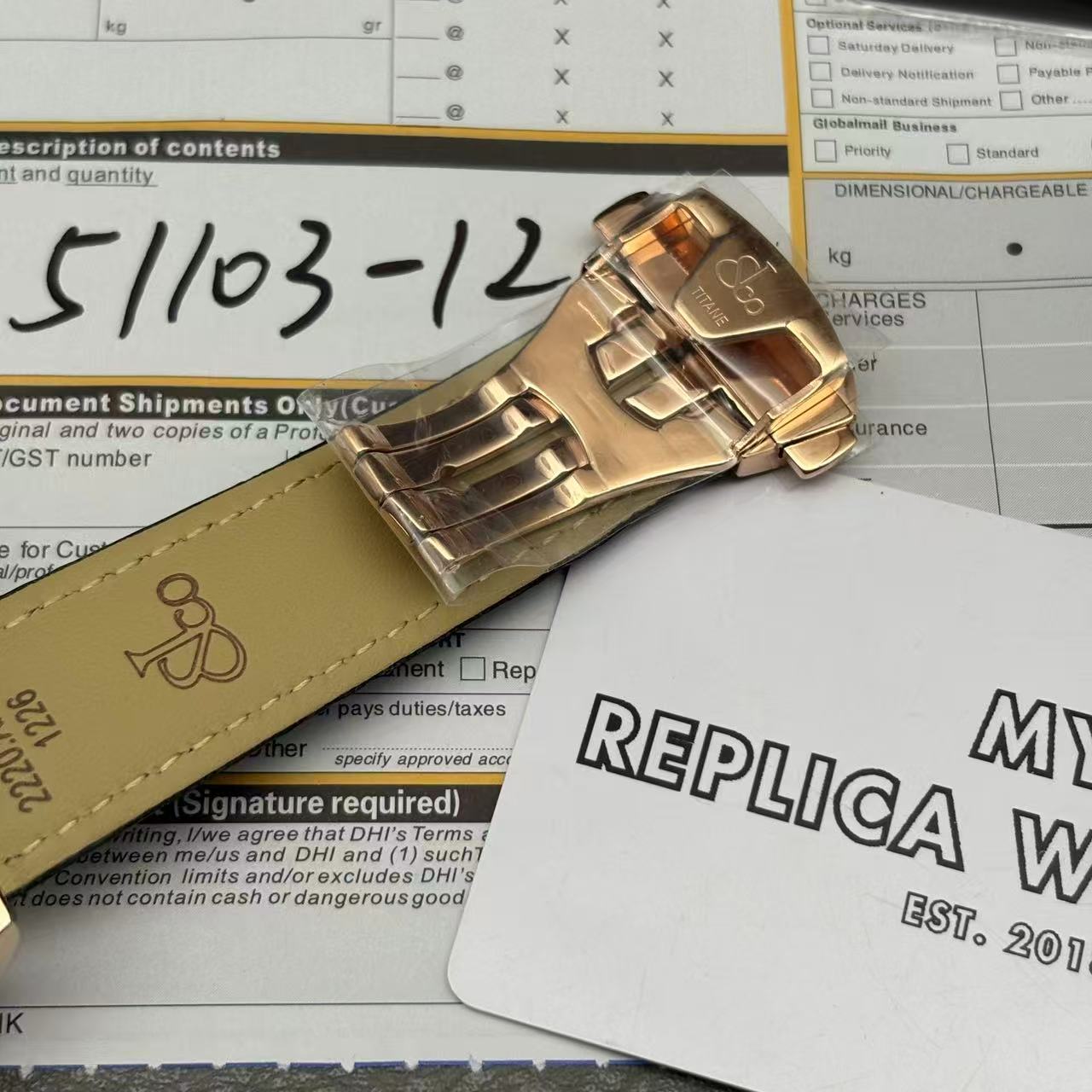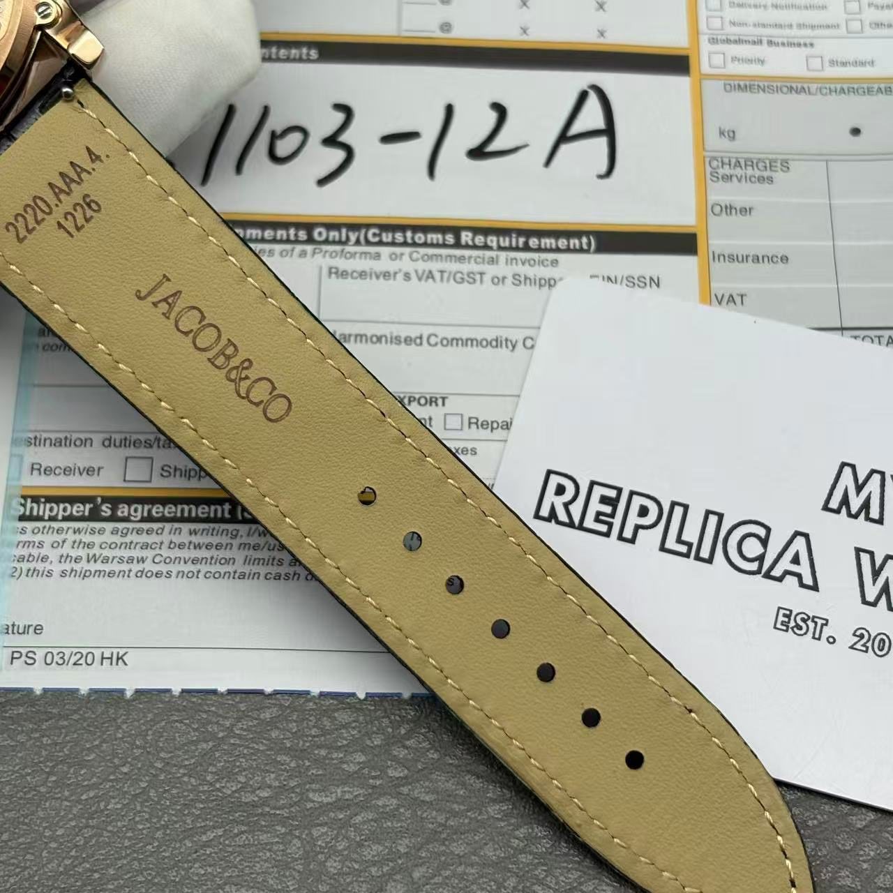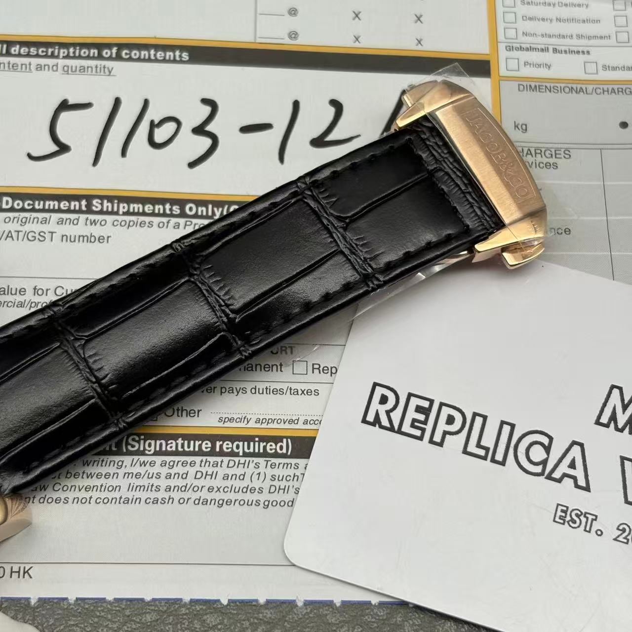 This replica is powered by a Swiss-clone manual wind movement, and paired with a rich black leather strap and rose gold clasp for added luxury. It’s bold, eye-catching, and a guaranteed conversation starter — made for collectors and those who love a bit of drama on the wrist.