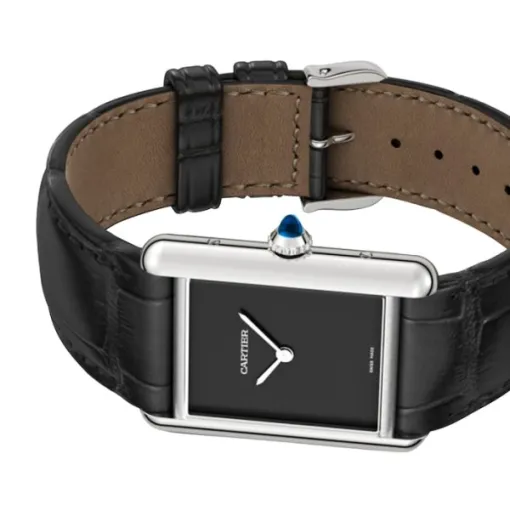 The 22mm × 29.5mm stainless steel case provides a slim and graceful wrist presence, perfectly suited for a refined, feminine style. Its sleek proportions and polished finish highlight the signature Tank silhouette, making it ideal for both everyday wear and formal occasions.