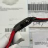 - Black rubber strap with red interior adds dynamic contrast and sporty elegance