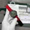 Powered by a Swiss automatic Super Clone chronograph movement, this Daytona replica guarantees seamless performance, smooth timing, and precision worthy of the original. The scratch-resistant sapphire crystal ensures enduring clarity, while the black rubber strap with red lining delivers both sporty comfort and bold character. With water resistance up to 50 meters, it’s designed for those who live life on their own terms — confident, bold, and unapologetically lucky.