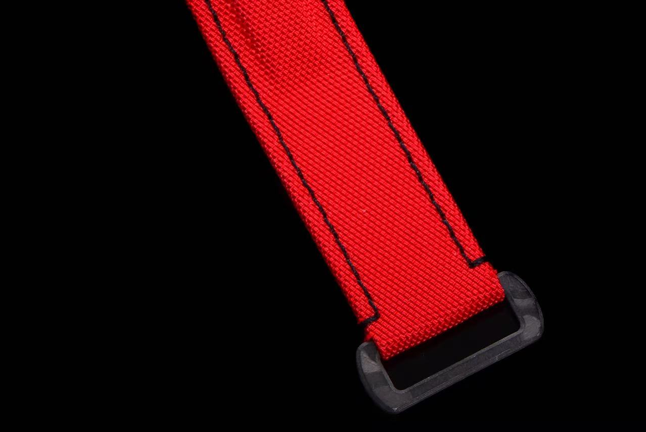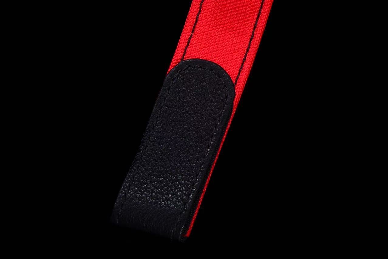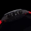 - Black rubber strap with red interior adds dynamic contrast and sporty elegance