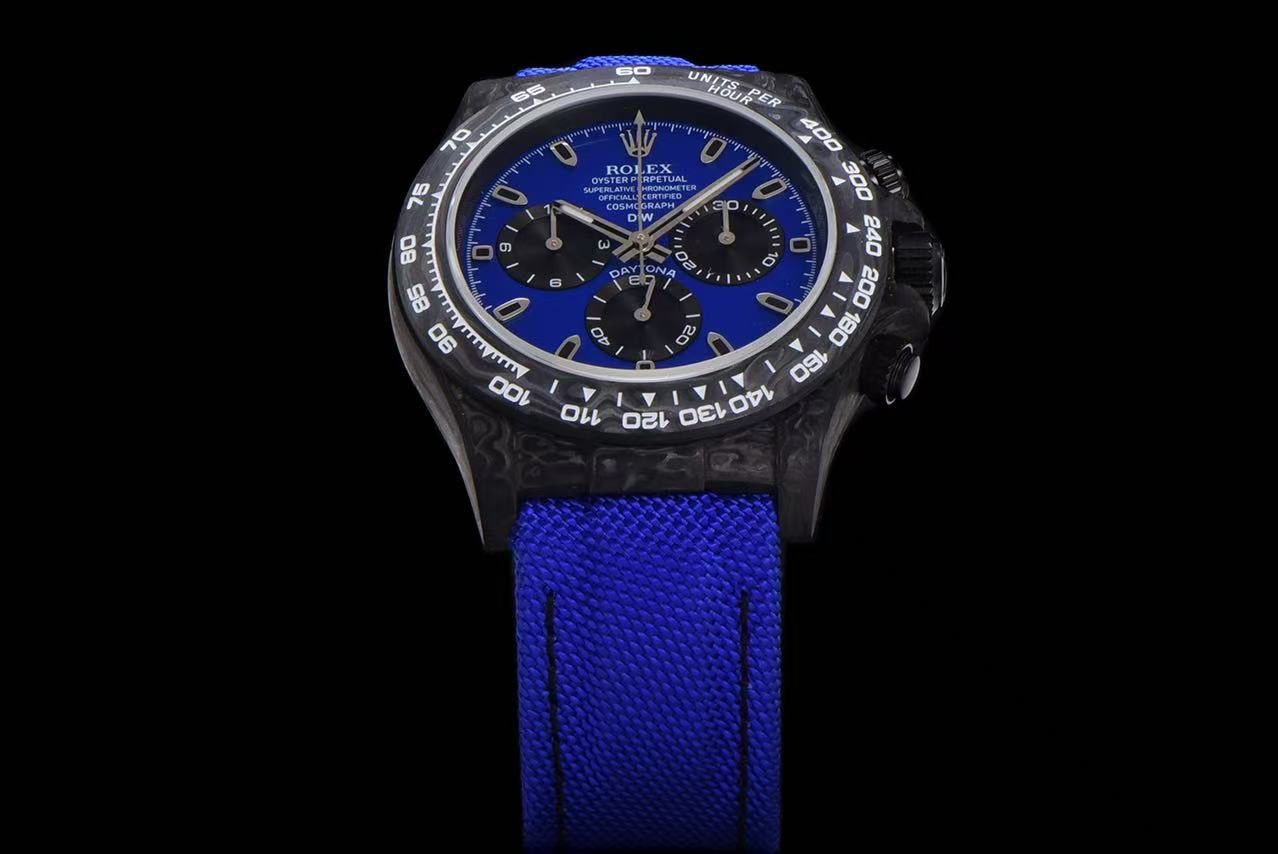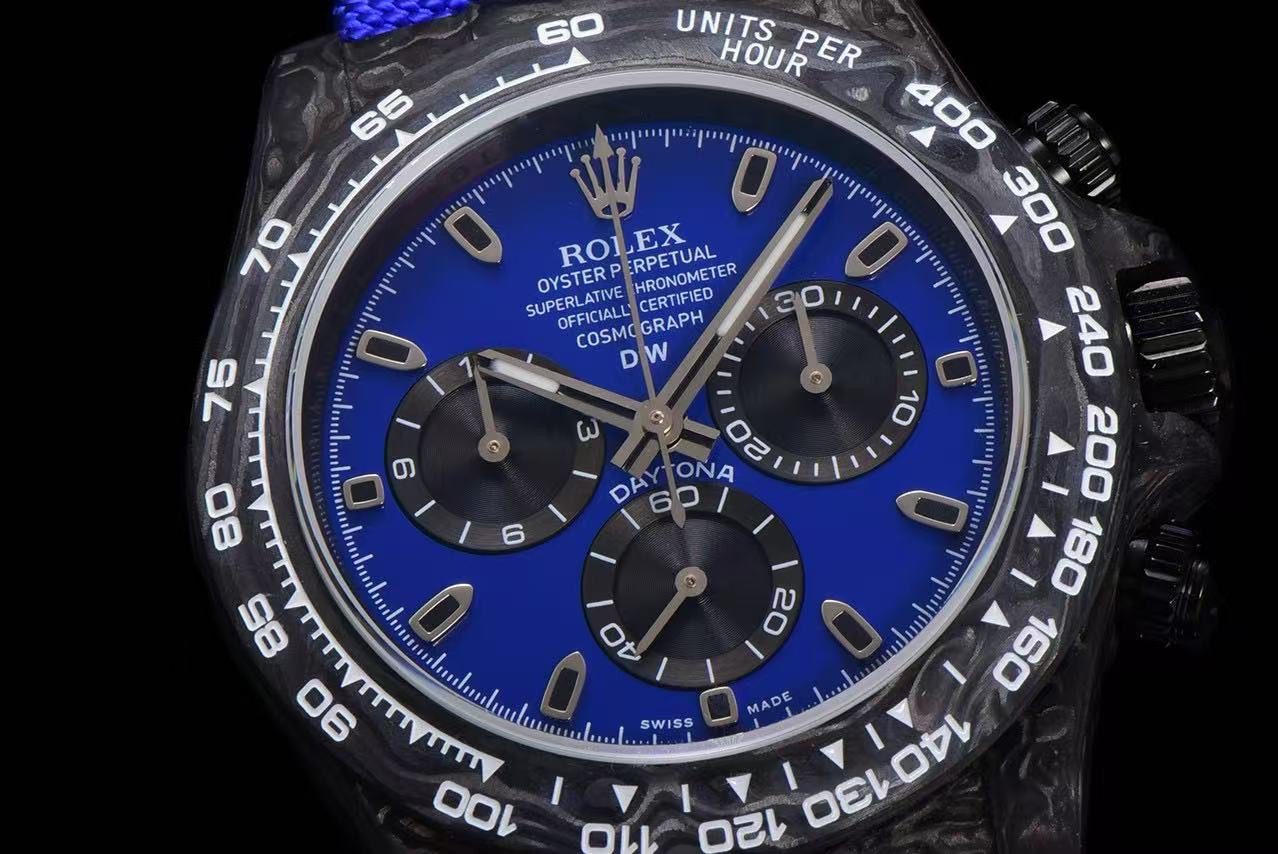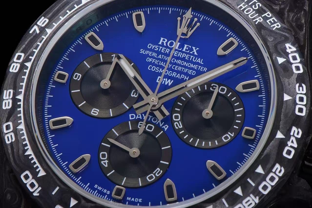 Limited Stock Alert: Only a few of this DiW Rolex Daytona Miami Blue Carbon replica remain available. Restocking is uncertain, making this a rare opportunity to own one of the most striking and sought-after DiW Daytona designs.