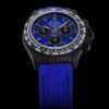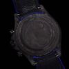Its 40mm carbon case delivers unmatched strength and lightness, while the matte carbon bezel with tachymeter scale reinforces its racing pedigree. The black dial is enhanced by vibrant Miami Blue subdials and chronograph hands, offering perfect contrast and legibility. Every detail — from the carbon weave texture to the luminous hour markers — reflects meticulous attention to modern design and performance engineering.