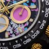 Powered by a Swiss automatic Super Clone chronograph movement, this Daytona replica guarantees accurate timekeeping, smooth chronograph operation, and long-lasting reliability. Protected by a scratch-resistant sapphire crystal and equipped with a rubber strap featuring subtle colored detailing, it offers both performance and comfort in one avant-garde package. With water resistance up to 50 meters, this timepiece is designed for both precision and style.