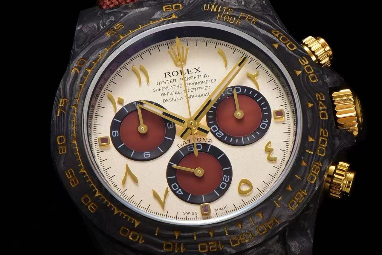 Secure your Replica DiW Rolex Cosmograph Daytona Volcano CarboQuartz today – availability is strictly limited.