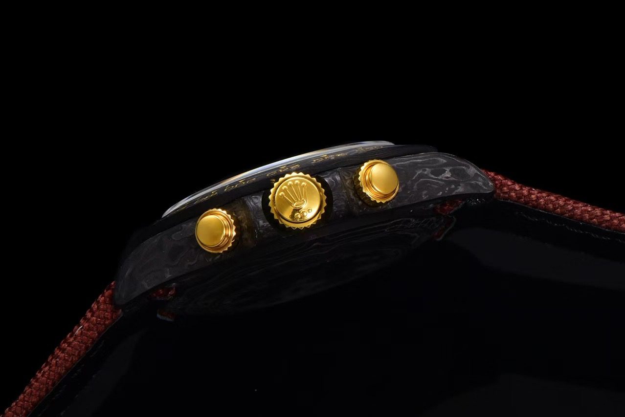 Limited Stock Alert: Only a few of this DiW Rolex Daytona Volcano CarboQuartz replica remain available. Restocking is uncertain, and each case features its own unique CarboQuartz pattern — ensuring no two are ever the same.