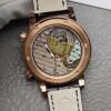 The 44mm case, crafted in a rose-gold tone, offers a rich and stately presence on the wrist. Finished with polished edges and elegant contours, it reflects the grandeur expected from the Grand Complications line. Sapphire crystal ensures high clarity and scratch resistance, preserving the intricacy of the dial beneath.