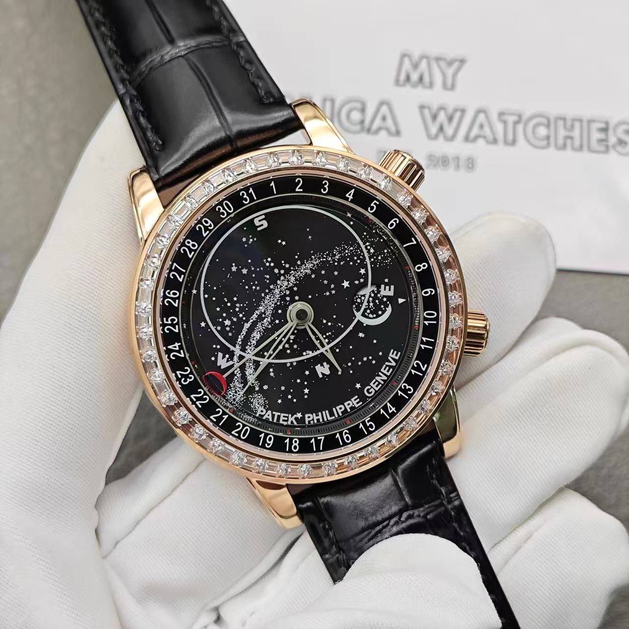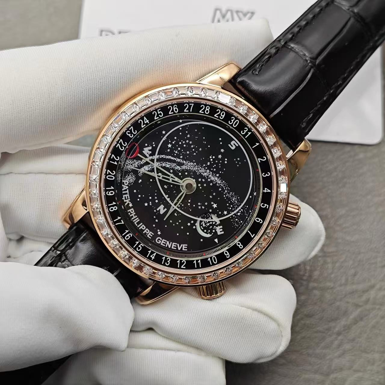 The Replica Patek Philippe Grand Complications 6104R-001 (44MM) is a masterpiece for collectors who appreciate artistry, complexity, and a dramatic wrist presence. Inspired by one of Patek Philippe’s most visually captivating creations, this replica brings together celestial beauty and luxurious design in a bold 44mm rose-gold–finished case.