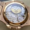 The 40mm rose gold case showcases the signature rounded-octagonal Nautilus bezel, beautifully brushed and polished to replicate the iconic Patek DNA. The integrated rose-gold bracelet flows seamlessly into the case, offering exceptional comfort and timeless style.