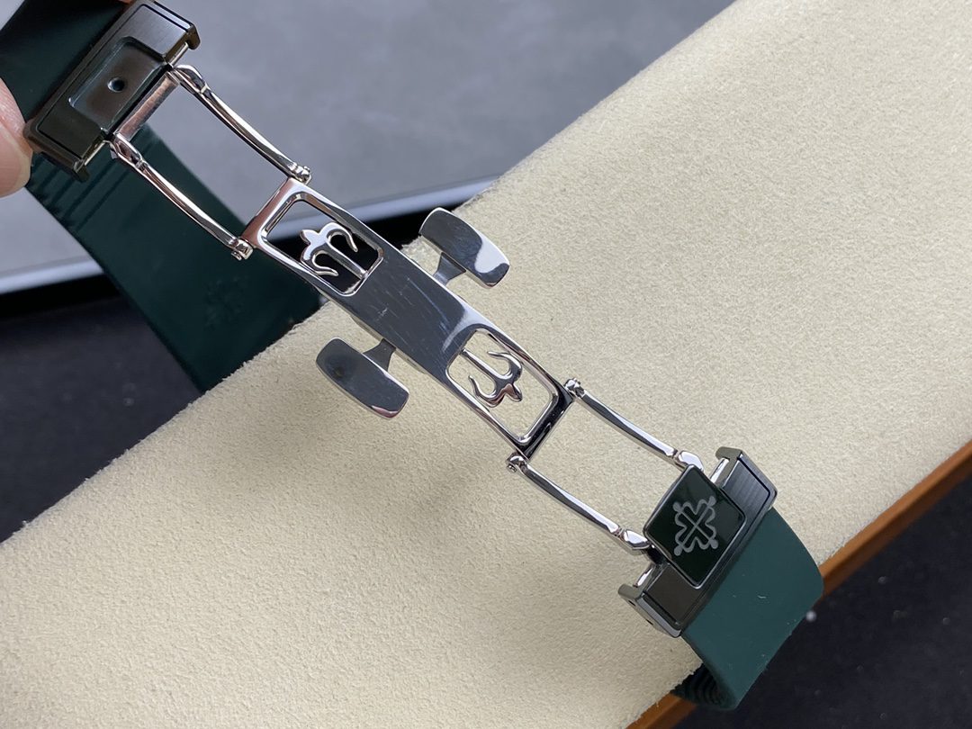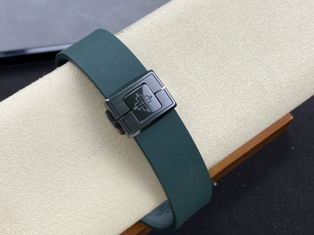 The 40mm case follows the classic rounded-octagonal Nautilus design, complete with polished bevels and brushed finishing that reflect light beautifully. Its slim profile, refined proportions, and secure screw-down crown embody Patek Philippe’s philosophy of understated sophistication.