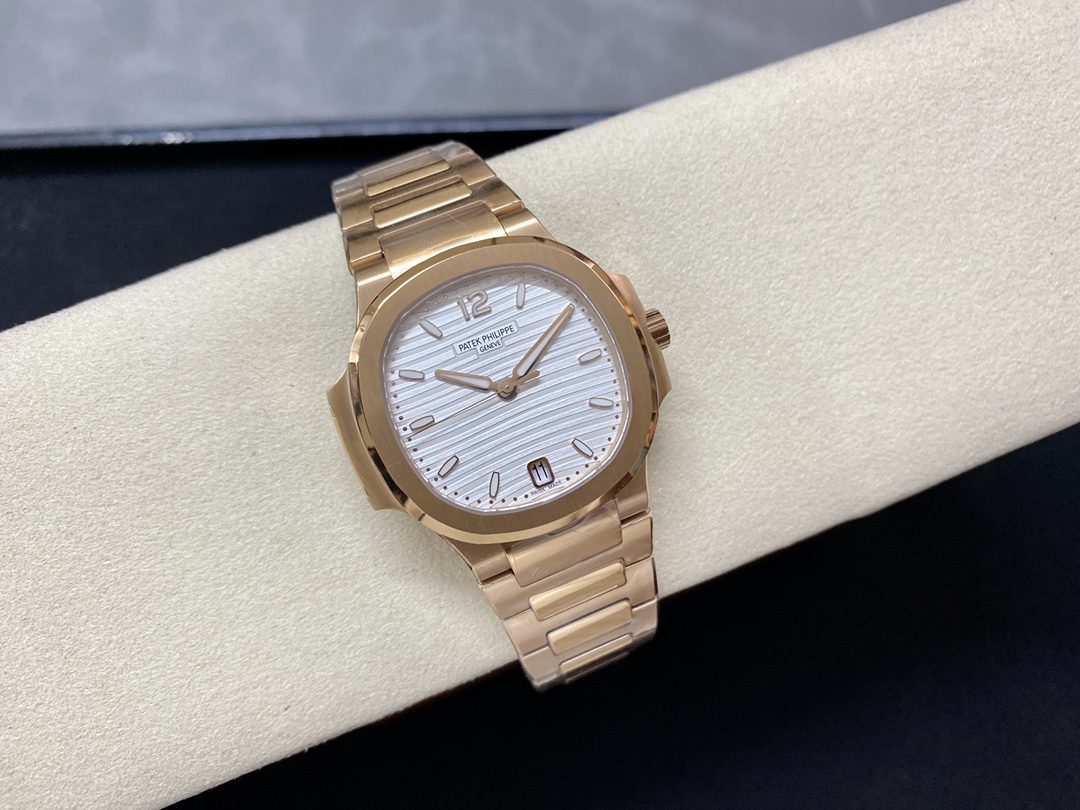 Replica Patek Philippe Nautilus Ladies Rose Gold & Yellow Gold Silver Dial 7118/1R-001 – 35.2mm