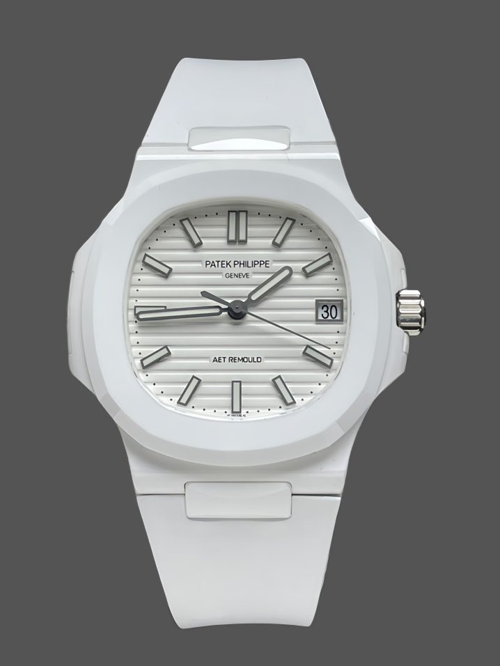 The Replica Patek Philippe Nautilus 5711 (White Dial, 40MM) delivers a clean, modern, and effortlessly luxurious interpretation of one of the most iconic watch designs ever created. This edition stands out with its white case, white dial, and comfortable rubber strap, giving the classic Nautilus silhouette a fresh, contemporary twist.