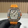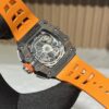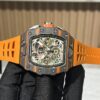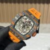The bright orange rubber strap complements the carbon fiber case, adding sporty flair and comfort, while the sapphire crystal ensures scratch-resistant clarity. Water-resistant up to 50 meters, this RM 11-03 McLaren replica perfectly captures the energy, innovation, and exclusivity of its original counterpart — a true collector’s piece for those who appreciate modern mechanical artistry.
