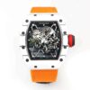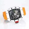 The high-arched sapphire crystal with dual anti-reflective coating ensures crystal-clear visibility, while the vibrant orange nylon strap adds a bold and sporty touch that complements the technical sophistication of the piece. Water-resistant up to 50 meters, this AAAA-grade Richard Mille replica redefines performance luxury and is built for both athletic endurance and elite style.