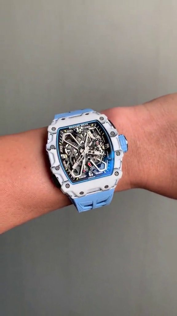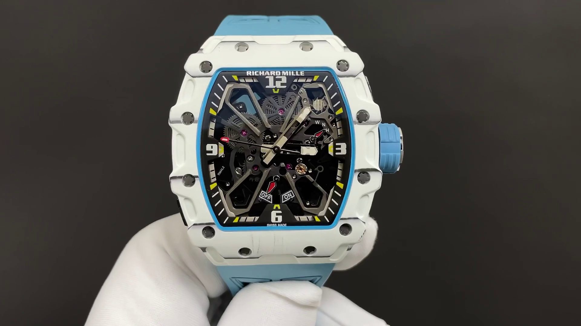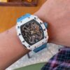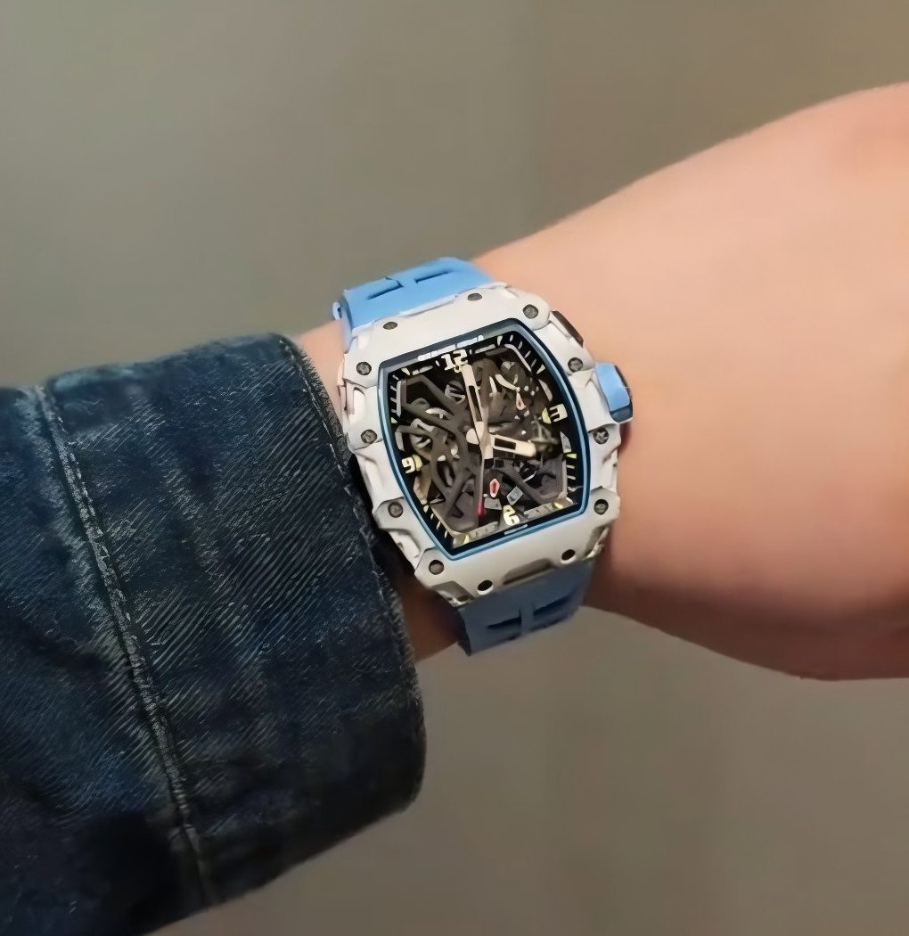Authentic Aesthetics – Faithfully replicates the RM 35-03 Rafael Nadal’s white carbon case, skeleton dial, and blue strap design