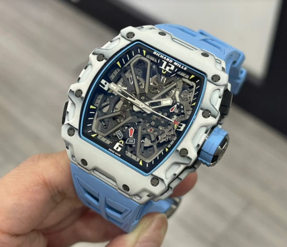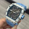 Framed by a scratch-resistant sapphire crystal and water-resistant up to 50 meters, this RM 35-03 replica delivers reliability for both everyday wear and active lifestyles. The light blue rubber strap adds a vibrant, athletic touch — merging casual elegance with high-end appeal for a truly versatile design.