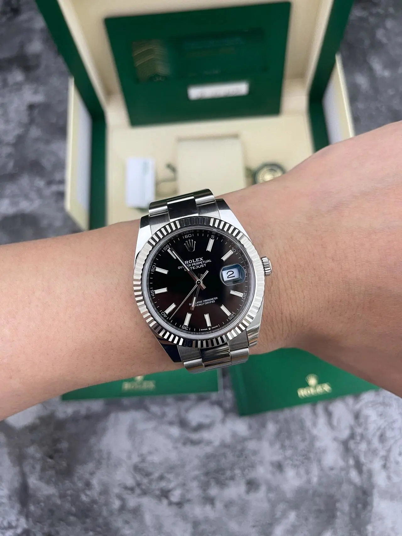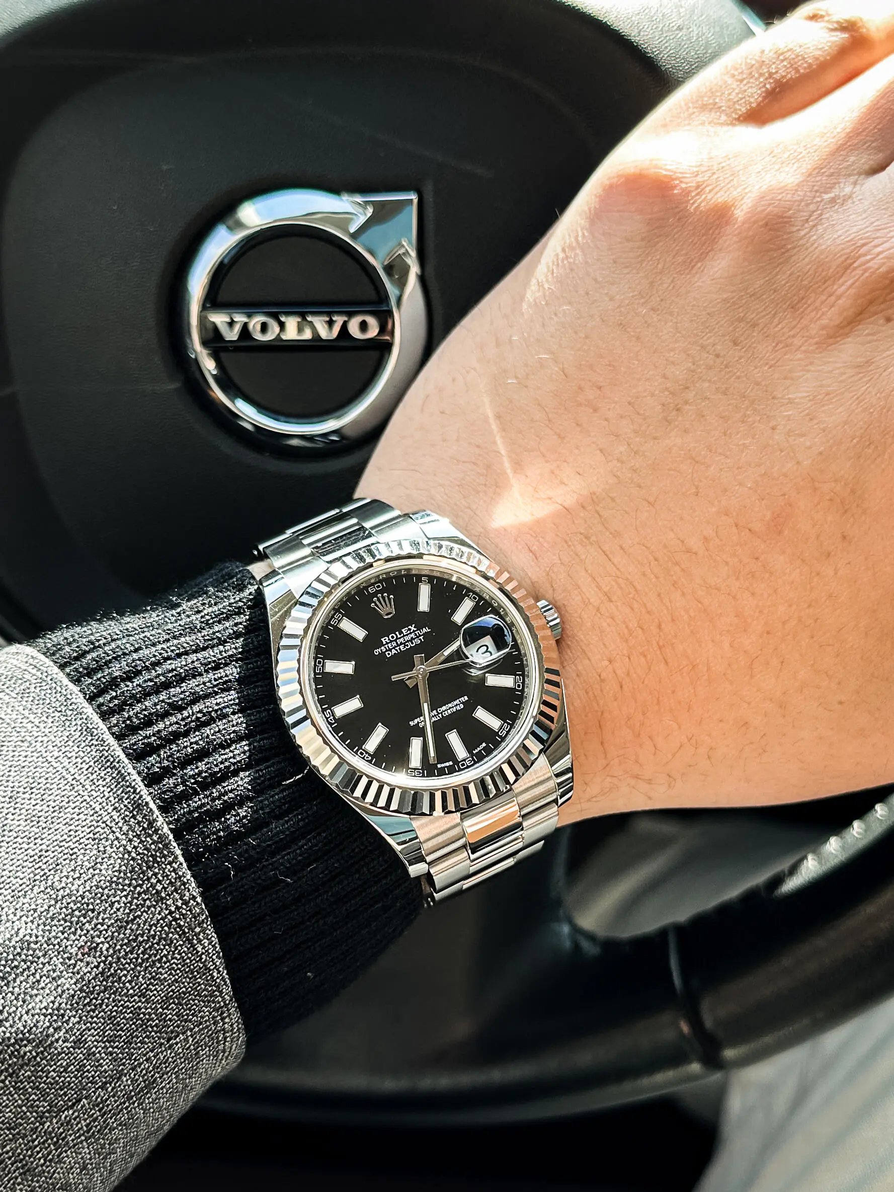 The dial is crisp, refined, and perfectly balanced, featuring applied hour markers, polished hands, and the legendary date window at 3 o’clock, magnified by the signature cyclops lens. The clean layout delivers excellent readability while maintaining a sophisticated, understated aesthetic that defines the Datejust collection.