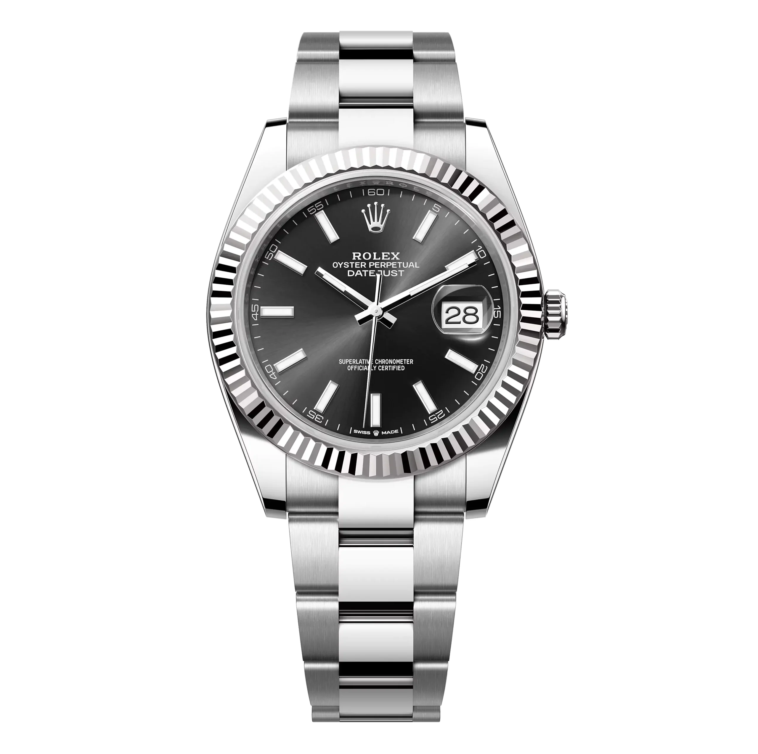 The 41mm Oyster-style case, inspired by white gold and stainless-steel finishing, offers a balanced and confident wrist presence. Its fluted bezel adds a touch of classic Rolex brilliance, catching the light beautifully while reinforcing the model’s iconic identity. Sapphire crystal ensures long-lasting clarity and scratch resistance.