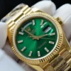 - Authentic Aesthetics – Faithfully replicates the Rolex Day-Date II 128238’s gold case, green dial, and signature President bracelet