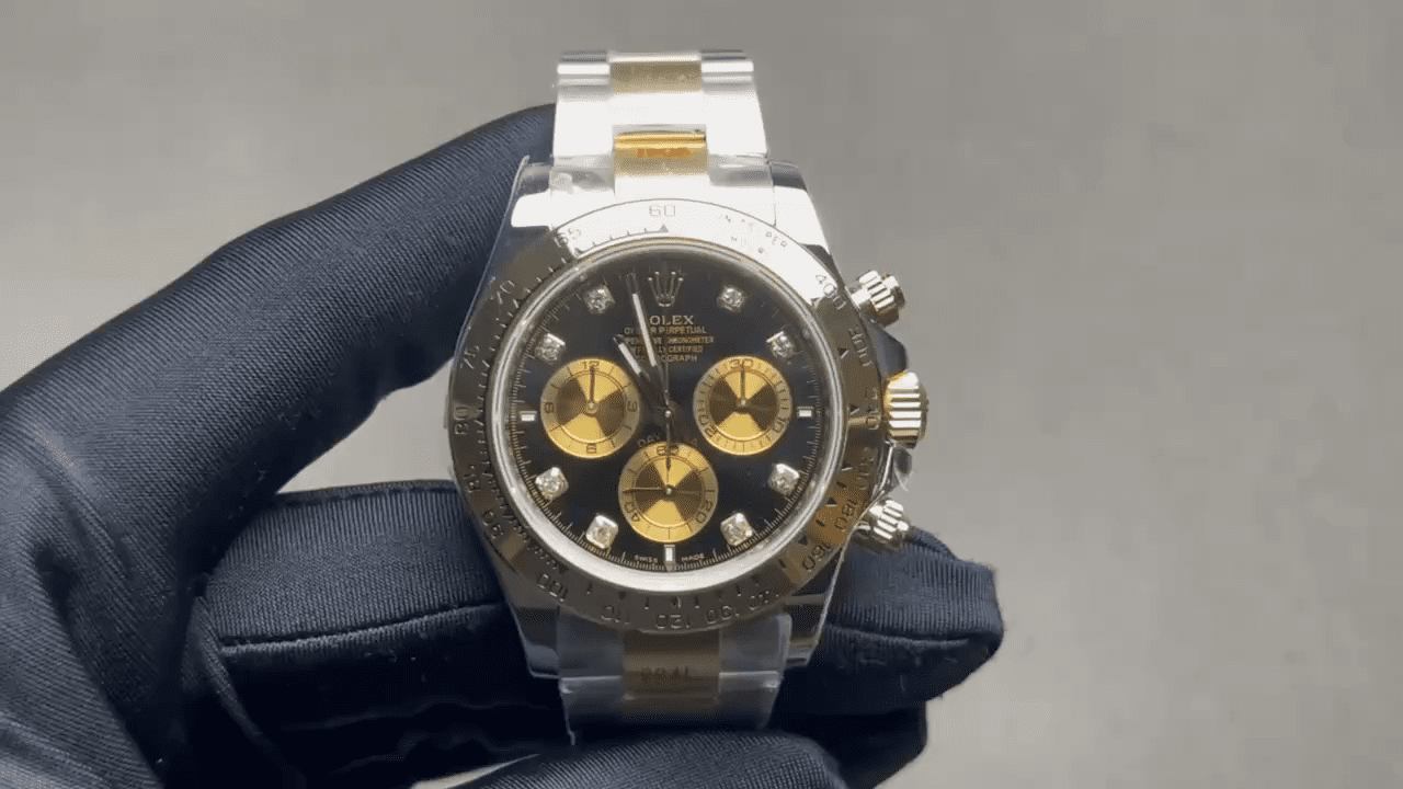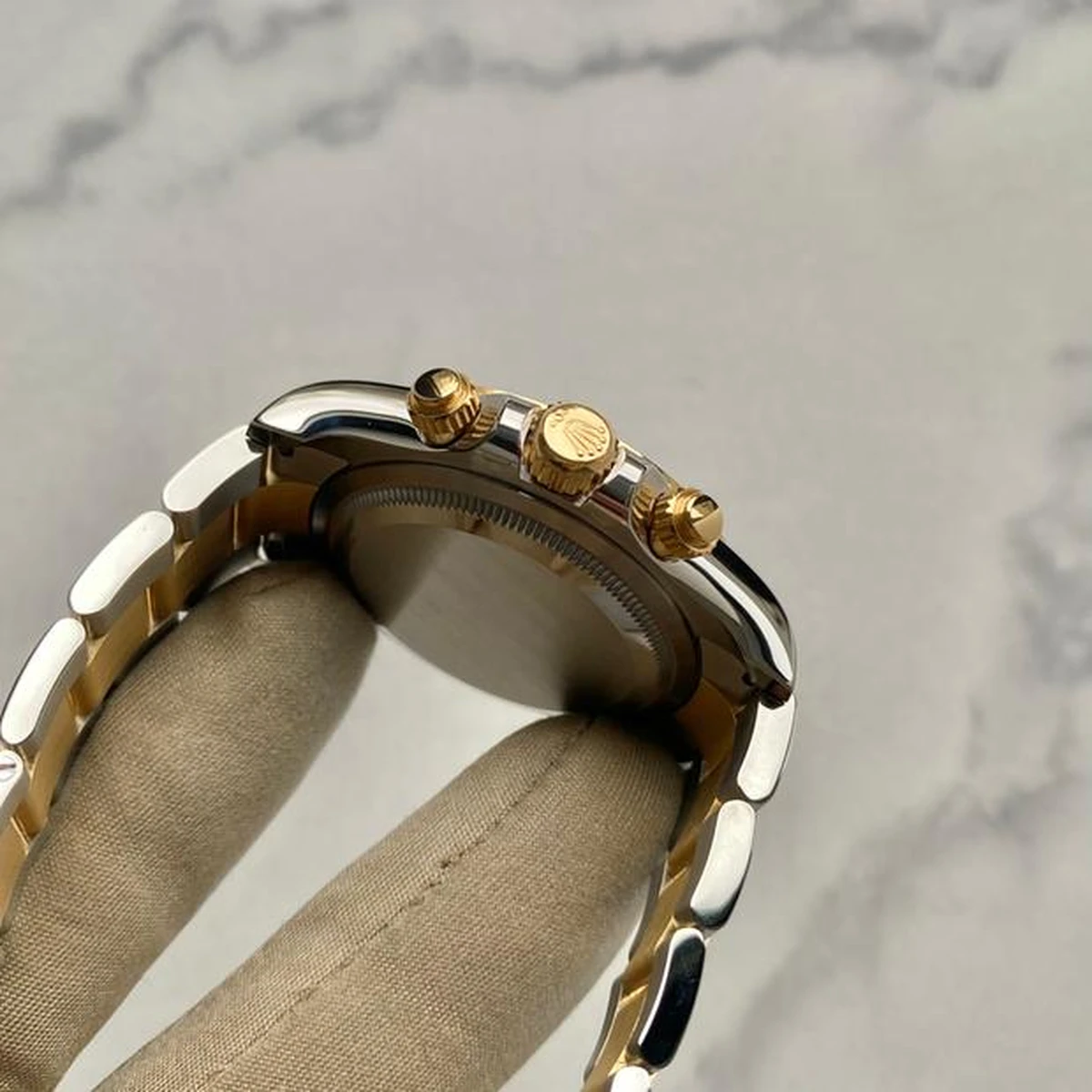 - Authentic Aesthetics – Perfectly replicates the Rolex Daytona 126503’s diamond-set dial, gold bezel, and polished two-tone finish