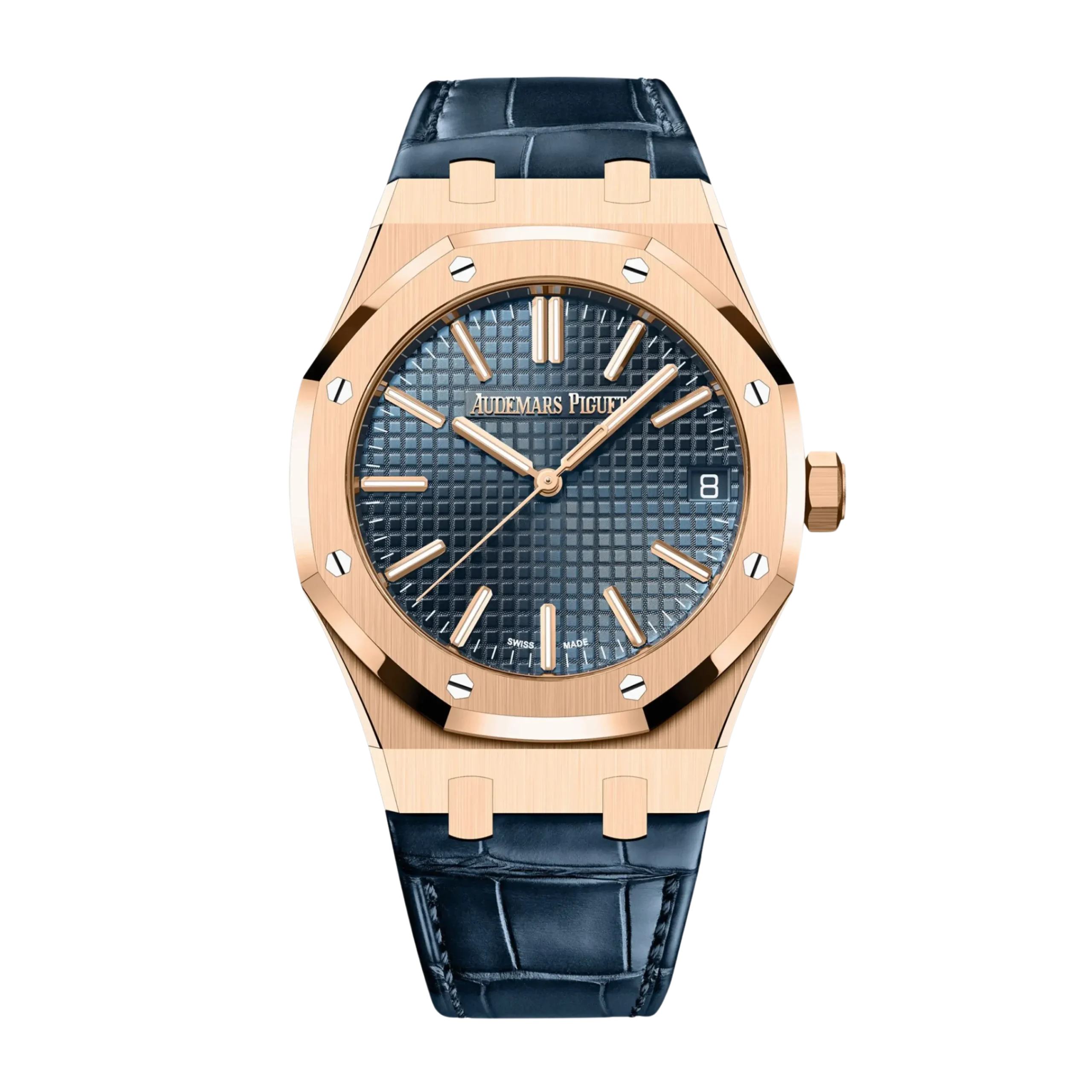 Powered by a high-precision Swiss selfwinding movement, this timepiece offers smooth, reliable performance suited for daily wear. The 41mm case provides a confident and balanced wrist profile, while the integrated bracelet enhances comfort and preserves the unmistakable Royal Oak architectural identity.