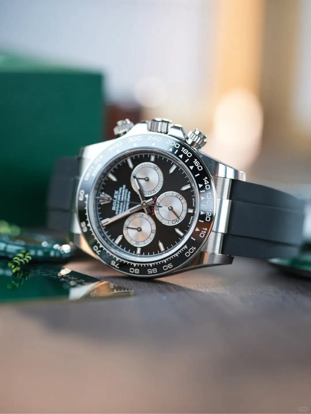 Powered by a high-precision Swiss movement, this timepiece delivers smooth chronograph functionality and reliable timekeeping. The Oysterflex strap offers a secure, flexible fit on the wrist while maintaining the unmistakable premium feel associated with the Daytona collection.